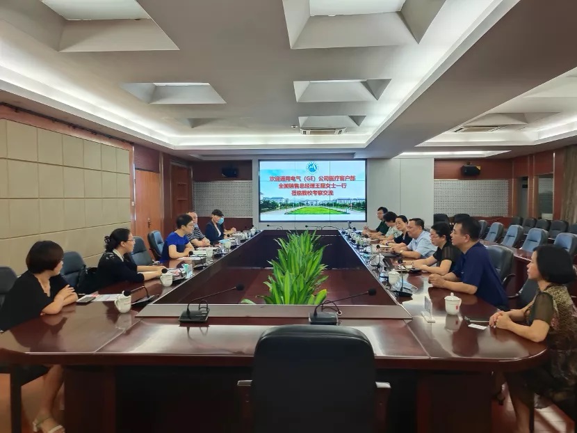 7月29日下午,通用电气(GE)公司医疗客户服务部中国区销售总经理王磊、客户服务部产品部总经理赵斌、客户服务部市场部总监郭秋蓉、客户服务部基础医疗总监邝济丹等一行6人访问我院,学院党委书记曾武祈、副院长黄铭珊、副院长郑翠红在行政楼四楼会议室会见了王磊一行。学院办公室、教务处、医学技术系等部门负责人参加了座谈会。