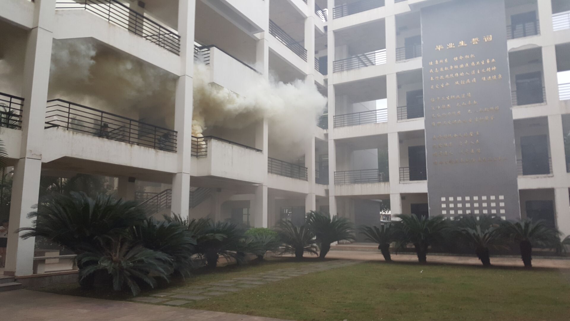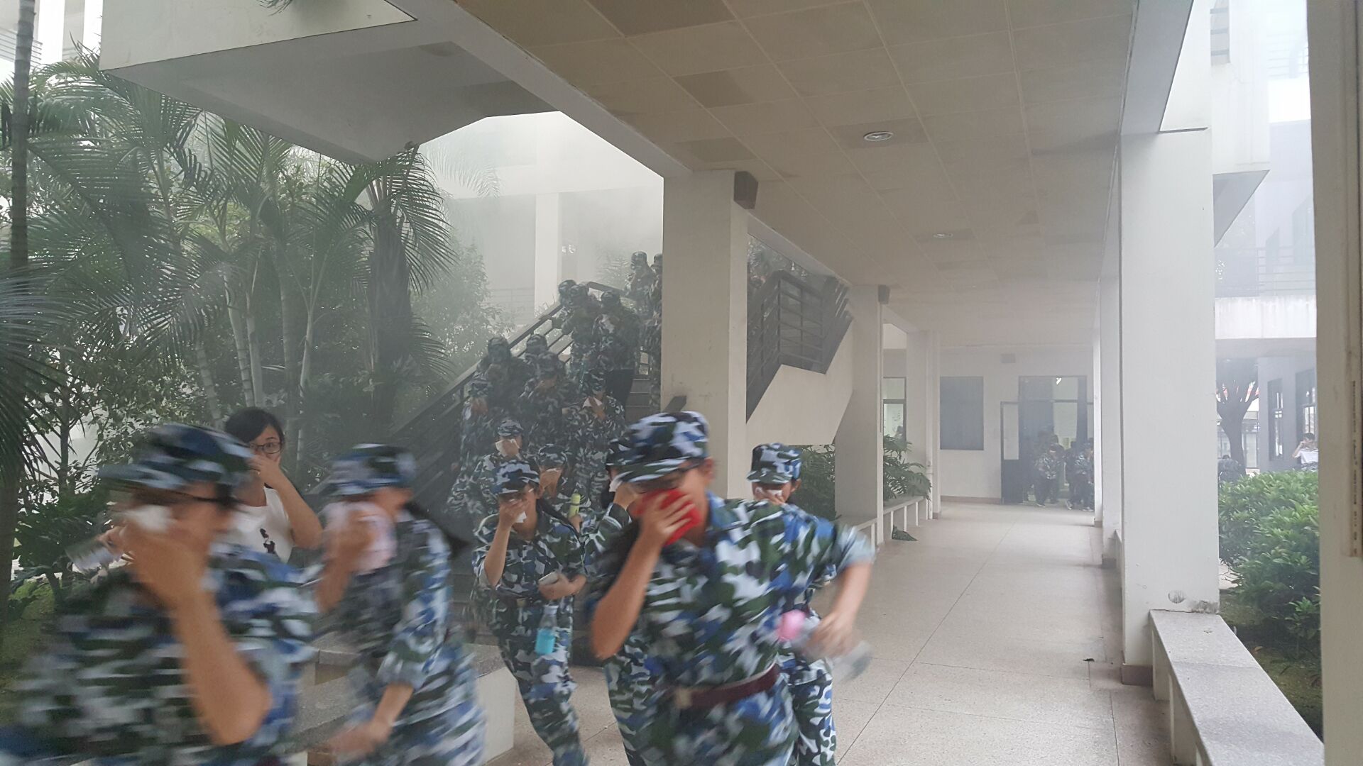 10月16日下午4时20分,保卫处联合学生工作处、后勤管理处、73919部队在教学楼举行2016级新生地震(消防)应急疏散演练。通过真实模拟火灾现场,演练《地震(消防)应急逃生预案》,警报声响后,辅导员第一时间到位组织人员疏散,医务人员赶赴现场开展应急救援。全体新生按照设定的疏散线路有序匍匐逃生,待最后一名学生“逃离火场”演练共耗时1分51秒,未发生意外事故。 通过此次演练,增强了2016级新生防灾意识和在遇到地震(消防)时逃生、自救能力,完善学院疏散、逃生、自救的组织体系,通过本次演练,查找不足、积累经验,进一步提高学院应对突发事件的快速反应能力。