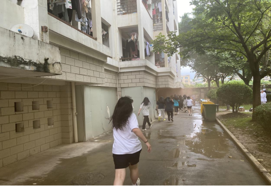 6月7日下午4:00时,全体演练工作人员到位,学生进入各自宿舍就位。为取得良好演练效果,我处工作人员点燃烟雾,模拟真实的地震火灾场景。演练开始,第一声哨响,全体学生均意识到突发灾难来临,立即在墙角及桌边蹲在躲避,5秒后第二声哨响,全体学生捂住口鼻,按照逃生路线有序的、迅速的逃离宿舍并撤离到安全区域。本次演练总共用时1分49秒,达到演练预期效果。