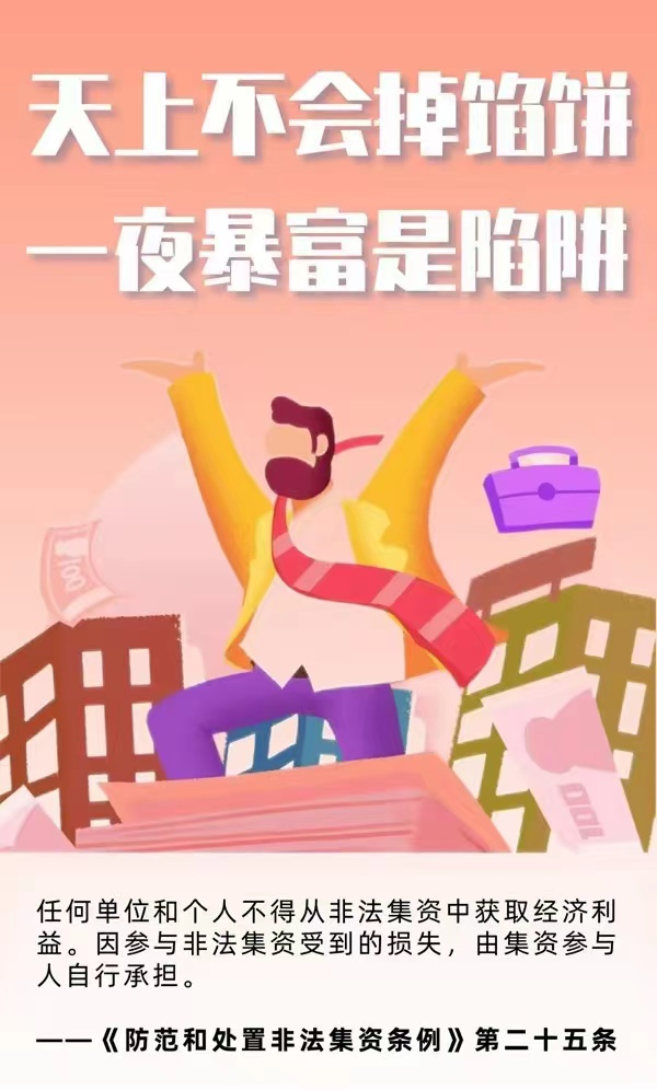 近年来,非法集资活动日益猖獗,给人民群众的财产安全带来了严重威胁。为了加强开云师生对非法集资的认识和防范意识,发此公告,提醒师生提高防范意识,共同抵制非法集资,以期共同构建一个和谐安全的校园环境。