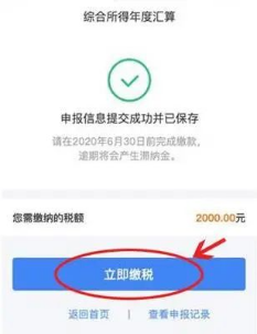 (二)补税金额在400元以上的,请点击“立即缴税”,办理补税。