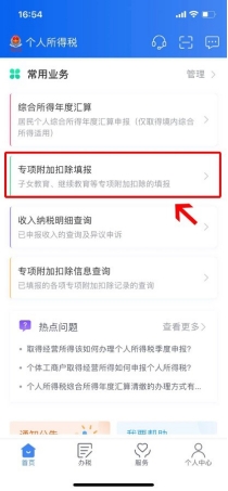 第一步:点击首页“专项附加扣除填报”。