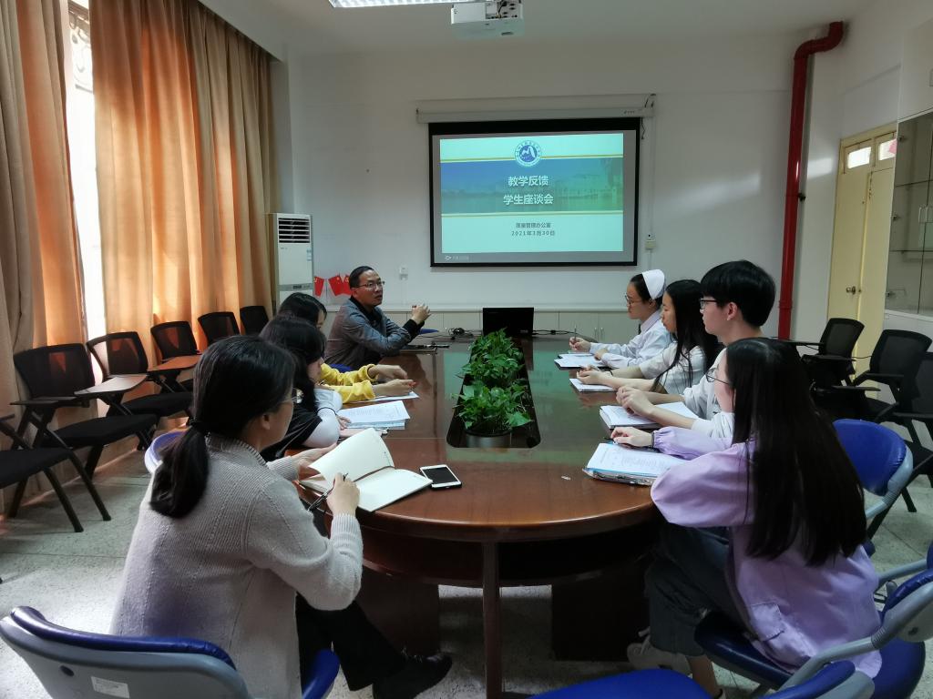 2021年3月30日中午,质量管理办公室在马克思主义学院会议室召开“教学反馈学生座谈会”,质量管理办公室主任郭礼坚、副主任王珊珊等人员和各二级院系学习部部长参加了座谈。会议由郭礼坚主持。