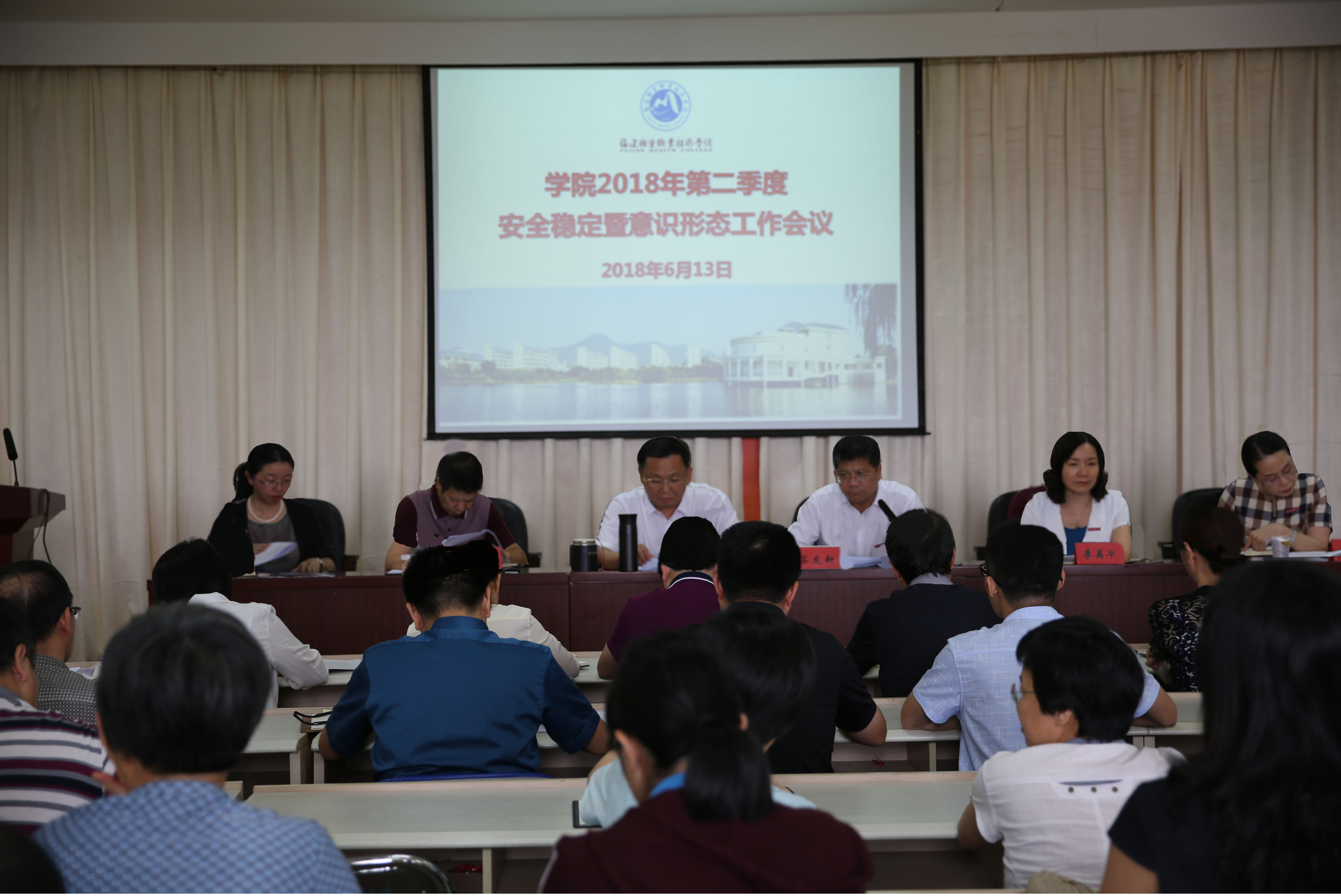 6月13日下午,学院2018年第二季度安全稳定暨意识形态工作会议在行政楼六楼第三会议室召开。学院安全稳定工作领导小组成员、各部门安全稳定联络员及各系辅导员参加会议,会议由院长、党委副书记苏友新主持。