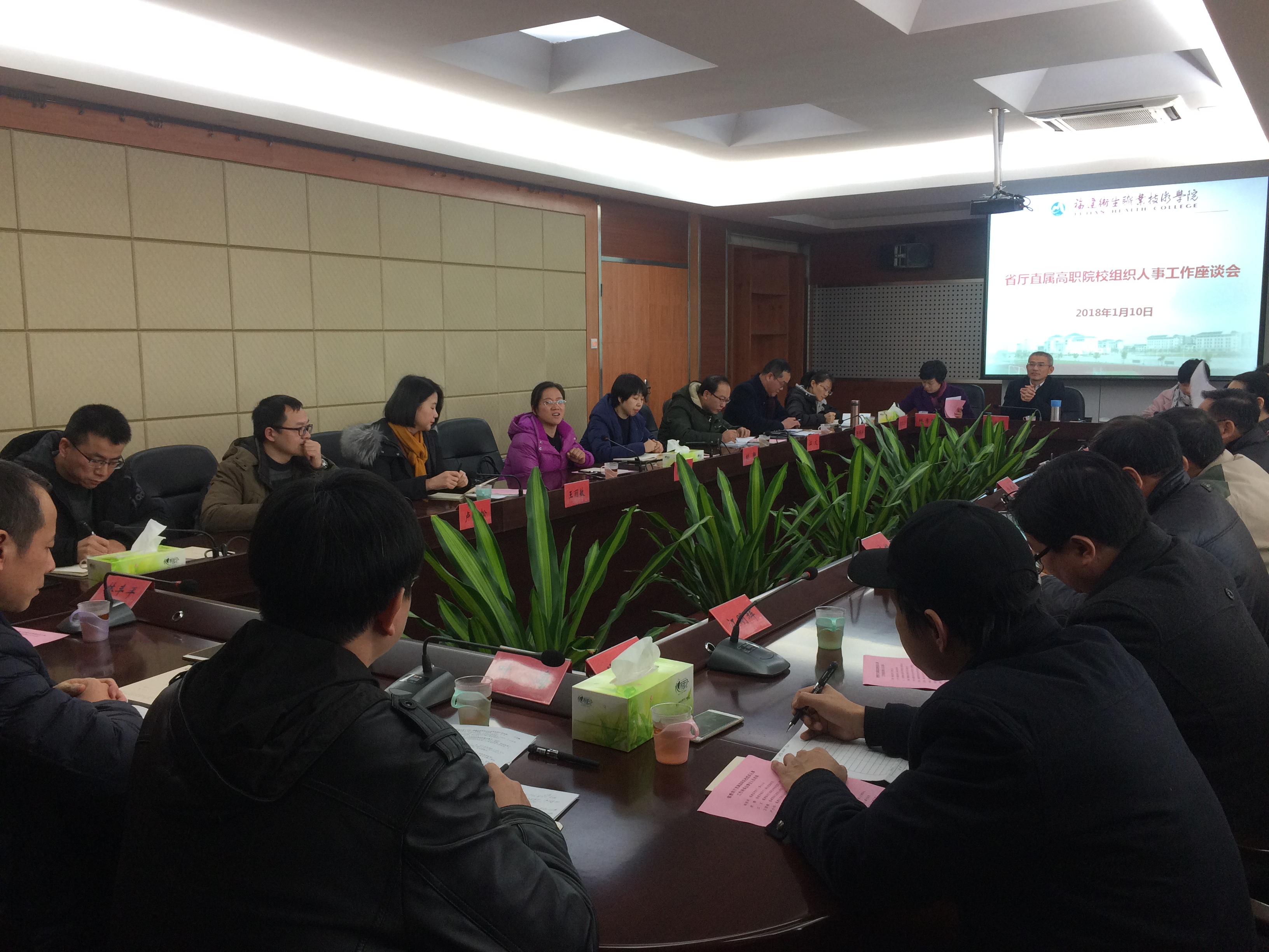 1月10日下午,福建省教育厅直属高职院校组织人事工作座谈会在我院行政楼四楼第一会议室举行。省教育厅人事处处长陈丽英、副调研员胡静莅临指导,福建船政交通职业学院、福建信息职业技术学院、福建水利电力职业技术学院、福建林业职业技术学院、福建农业职业技术学院、开云在线登录app入口、福建幼儿师范高等专科学校、厦门海洋职业技术学院、福建生物工程职业技术学院等9所省教育厅直属高职院校党委工作部及人事处负责人参加座谈会。我院在家领导曾武祈书记、林建团副书记、郑翠红副院长出席会议。