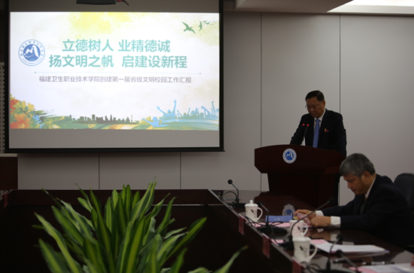 11月19日,以福建师范大学纪委书记黄清波为组长的省级文明校园考评组一行7人莅校,对我院申报第一届(2015-2017年度)省级文明校园创建工作进行实地考评。我院在行政楼第一会议室召开创建工作汇报会,院党委书记曾武祈、党委副书记林建团、副院长黄开良、纪委书记李美华,各职能处室负责人、二级单位党政负责人、精神文明建设工作办公室全体工作人员参加汇报会。