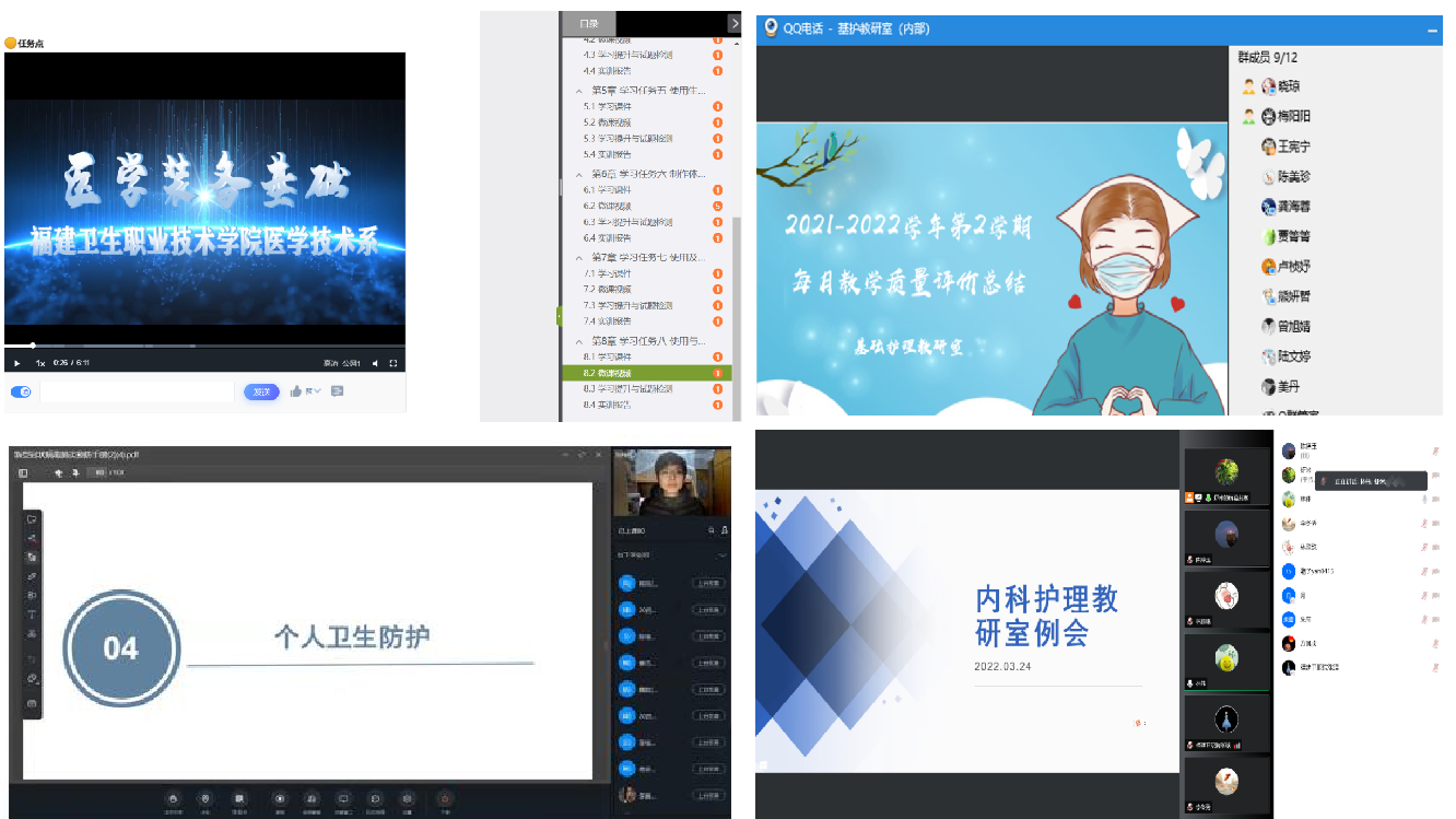在线上教学过程中,“双带头人”教师党支部书记牵头各教研室,积极探索最优教学模式,集体线上备课,共同研讨教学内容和教学进度,研究线上实习模式和适用平台,开展实习生线上实习准备工作。护理学院两位“双带头人”支部书记带头参与线上教学督导,课后就各课程的教学情况做出点评,并与任课教师交流经验、指导教学工作,着力提升教学品质;因疫情无法开展线下实训课,党员教师们积极引导护理学院学生在宿舍就地取材,利用玩偶、枕头等进行模拟实训,做到理论实践相结合。医学技术系第二党支部在支部书记钟伟雄的带动下,积极推进专业建设,开展智能医疗装备技术专业和医用电子仪器技术专业的线上人才培养方案制定会,同时在学习通平台开设《医学装备基础》线上课程,录制教学实训视频,利用虚拟仿真手段开展线上理论授课和实训教学。