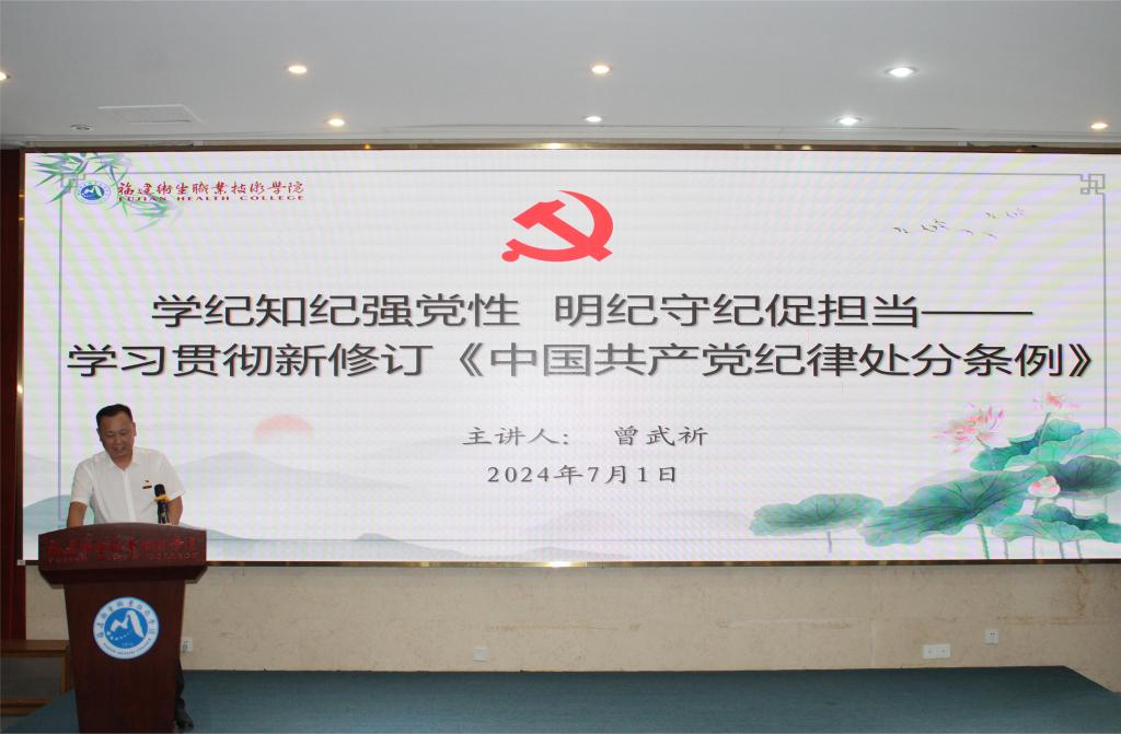 会前,党委书记曾武祈作《学纪知纪强党性明纪守纪促担当》为题的党纪学习教育专题党课。
