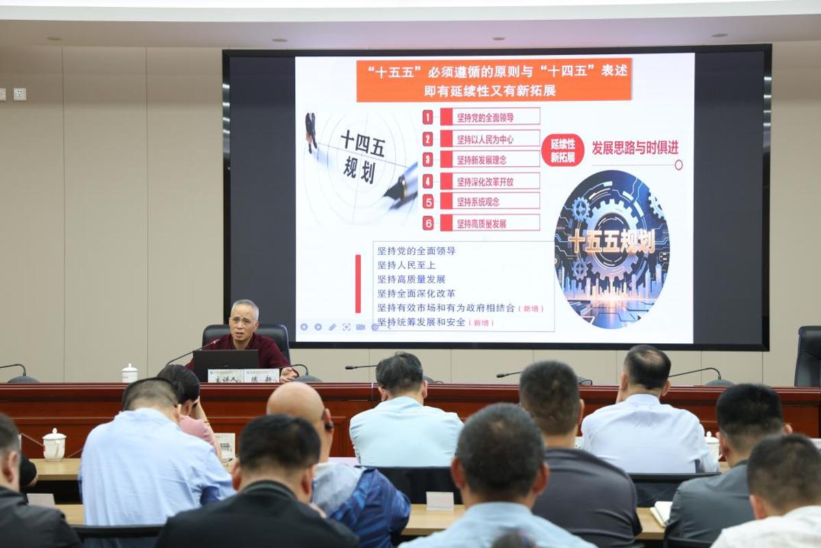 陈新教授以深厚的理论功底、严谨的逻辑、通俗的表达,全方位、深层次解读了党的二十届四中全会精神和“十五五”规划纲要的核心内容。他从“十四五”期间我国经济社会发展取得的亮眼成就切入,深入剖析“十五五”时期面临的发展环境与机遇挑战,对纲要部署的14项重点战略任务逐条阐释。整场讲座数据详实、分析透彻,既有理论层面的深刻阐释,又有实践层面的精准指导。