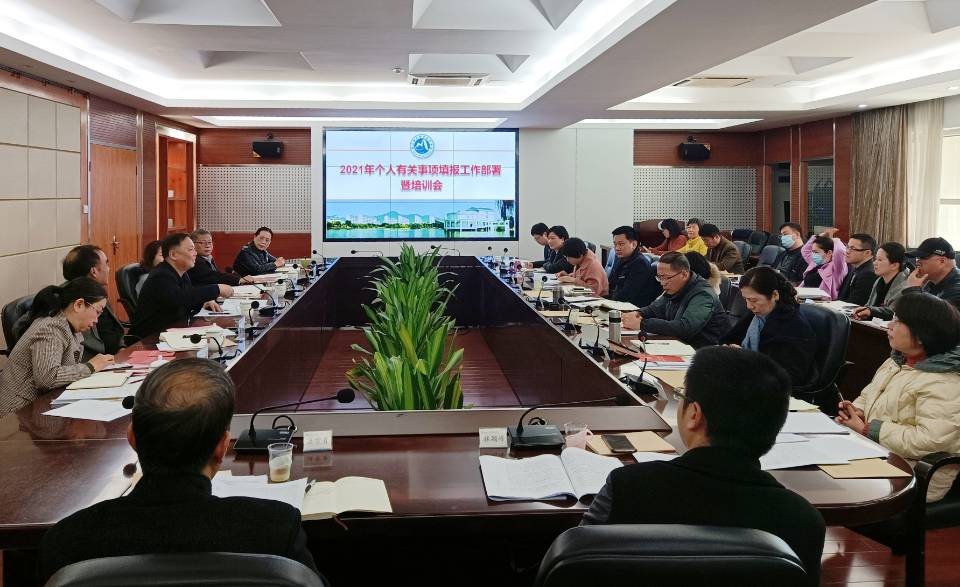 为进一步做好2021年个人有关事项填报工作,贯彻落实省委组织部《关于高质量做好2021年领导干部报告个人有关事项工作的通知》(闽委组明电〔2021〕1号)文件精神,1月21日上午,开云召开个人有关事项填报工作部署暨专题培训会,会议由党委书记曾武祈主持,副处级以上领导干部共27人参加培训。