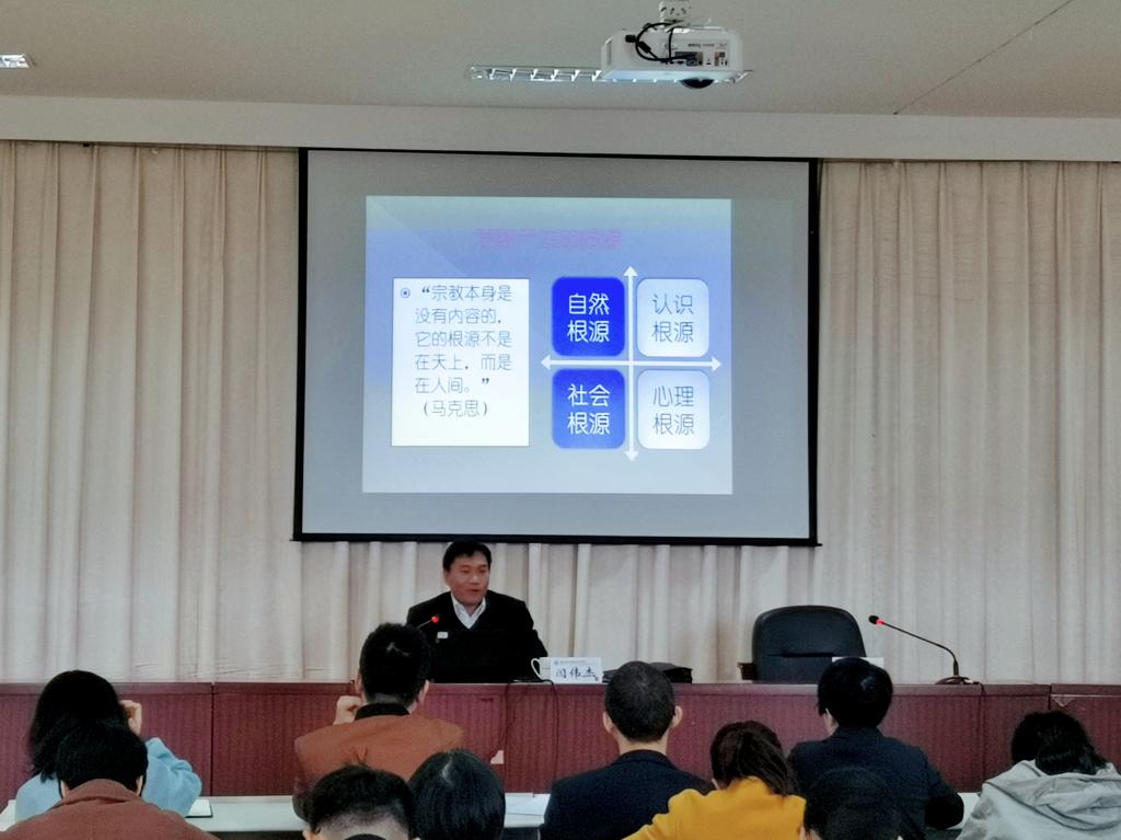 闫伟杰从马克思主义宗教观、我国的宗教政策、中国共产党宗教工作的基本方针、如何做好反邪教教育等几个方面详细讲述了新时期如何做好学校宗教教育工作,对我们树立正确的宗教观、做好师生宗教教育工作有很强的理论指导和实践价值。
