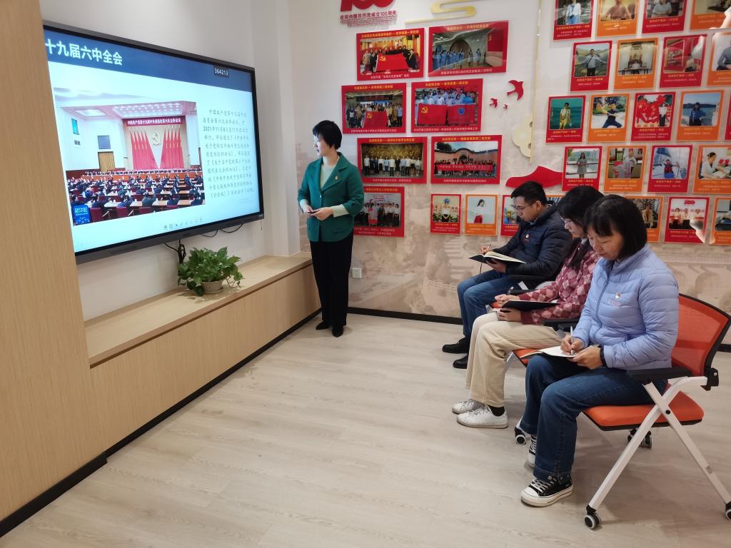 为深入学习贯彻党的十九届六中全会精神,11月22日下午,组织统战部党支部书记吴华在党员活动室开讲党的十九届六中全会精神宣讲专题党课。