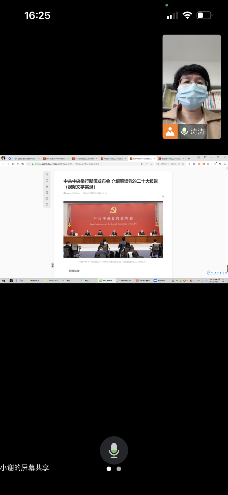 10月31日,组织统战部支部通过腾讯会议召开党员大会,组织全体党员开展专题学习,深入学习报告中的新表述、新概念、新观点,同时在会上部署了近期疫情防控相关工作。会议由支部书记谢涛主持。