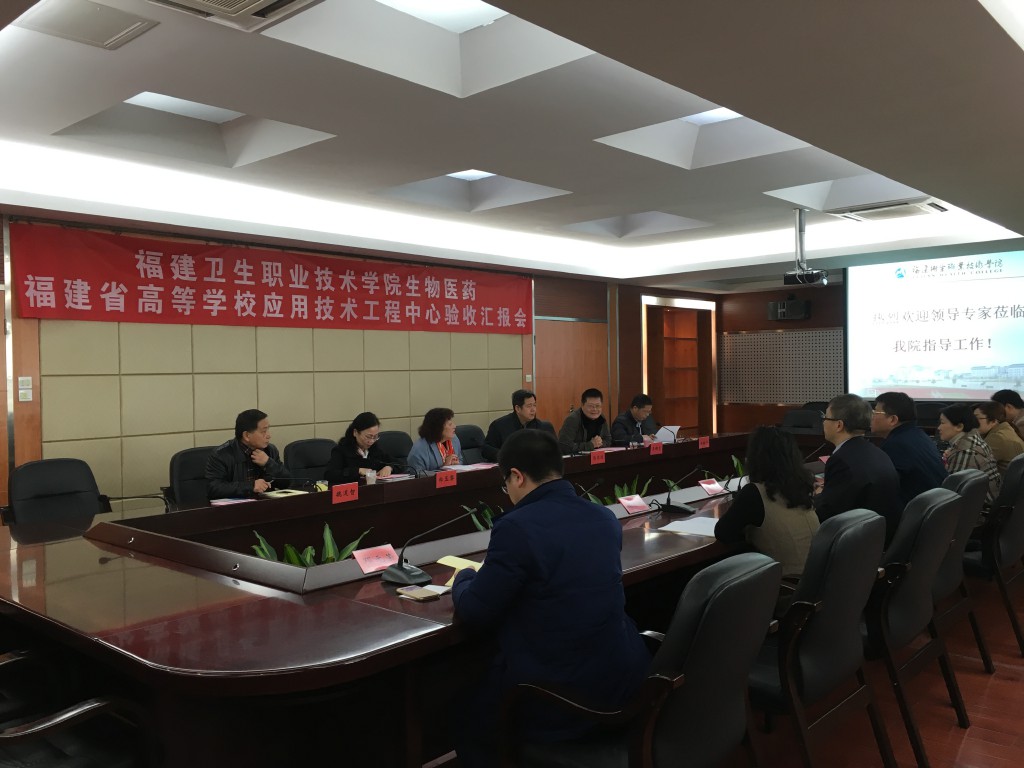 2017年3月3日,福建省教育厅科技处陈碧珍处长率专家组一行6人莅临我院对“生物医药福建省高等学校应用技术工程中心”建设项目进行验收,院长苏友新、副院长廖伟坚出席验收汇报会。与会专家听取了项目组的汇报,查阅了相关资料,并进行现场考察。专家组充分肯定了工程中心在建设期内取得的一系列成绩,认为工程中心已完成《建设项目计划任务书》的各项目标任务,一致同意通过验收,并对工程中心未来的发展提出许多宝贵意见和建议。