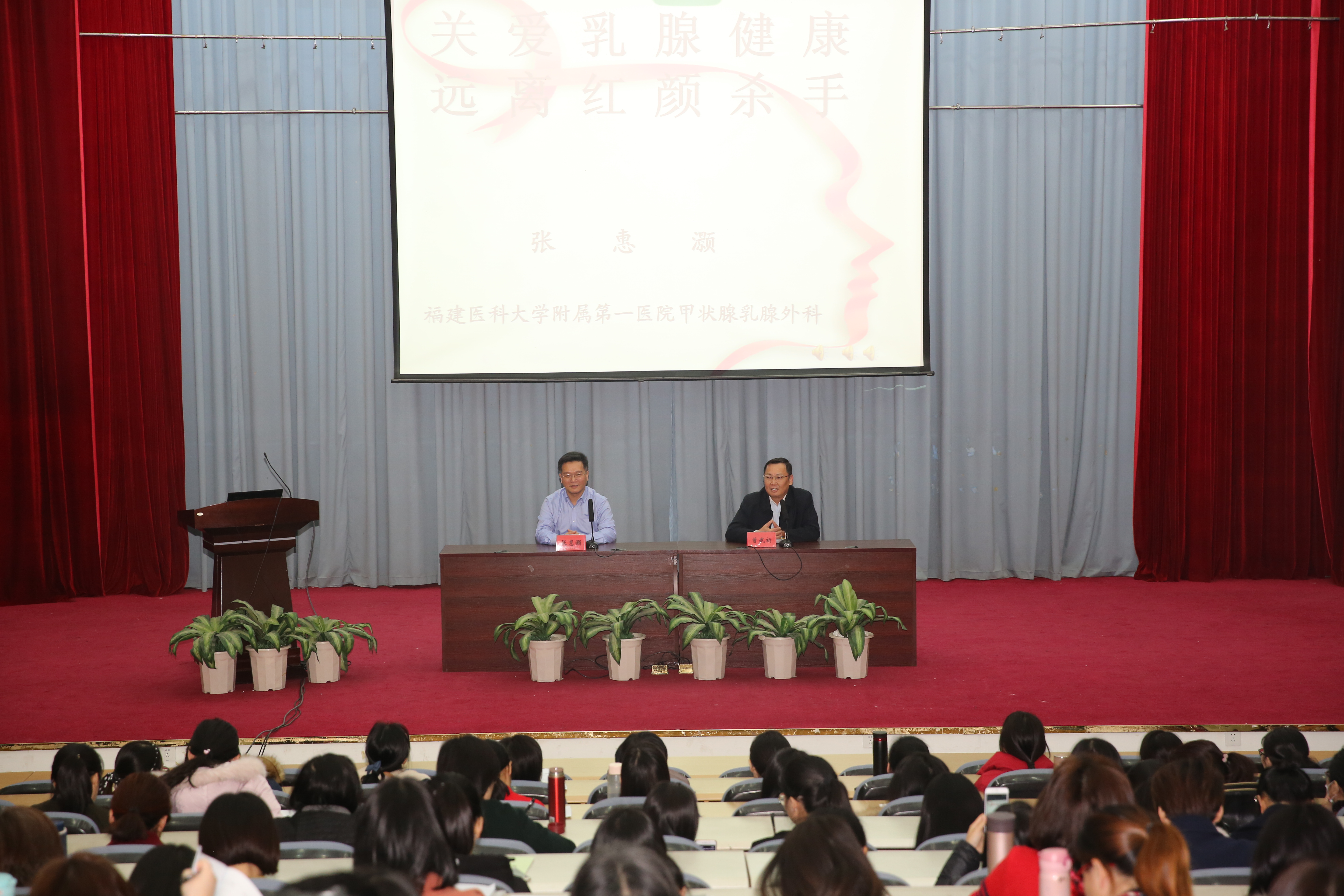 张主任是我省知名的乳腺病专家,兼中国肿瘤防治联盟福建省乳腺癌专委会常委、母乳喂养与乳腺健康协会专委会秘书长等多项业务职务,还是中国女性肿瘤预防基金预防大使。张主任讲座内容丰富、形象生动、深入浅出,受到了师生热烈欢迎。
