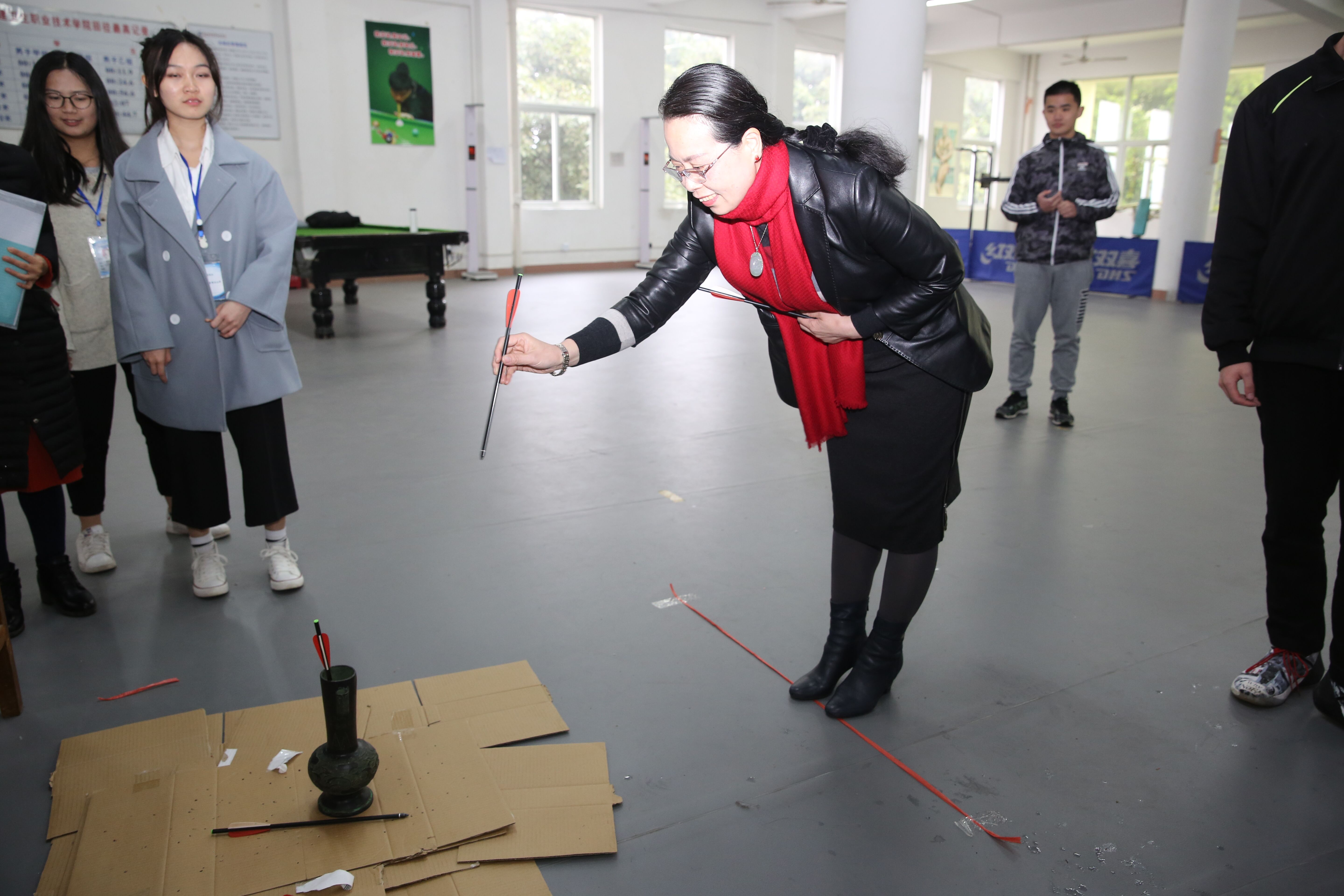 今年的活动较往年又有创新,增加了趣味性和娱乐性的项目,开展了投壶、呼啦快乐转、我要反着来、“肺”在水上漂、趣味跳绳等项目,只要参加活动达到游戏获奖规则均有纪念品,旨在鼓励广大女教职工积极参加活动,提高团队凝聚力。老师们跃跃欲试,参与其中,每个项目都排成长长的队伍。投壶项目最受欢迎,每投中一直箭,都引来大家欢笑声和喝彩声,场馆内呈现一派欢乐祥和的气氛。