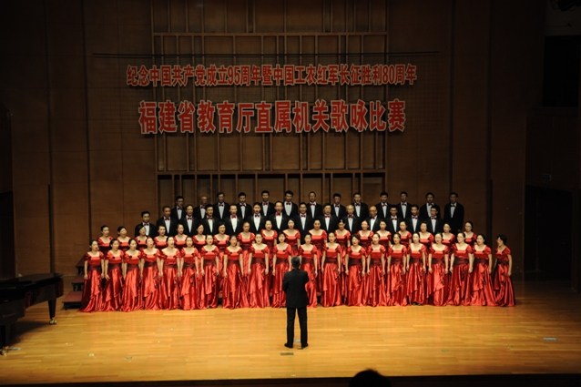 由省教育厅主办、教育厅直属机关委员会和省合唱协会承办的“庆祝中国共产党成立95周年暨红军长征胜利80周年”歌咏比赛于6月26日在福建大剧院音乐厅举行。教育厅机关和厅直单位共21支代表队(合唱团)参加了比赛,我院教工合唱团演唱的《忆秦娥·娄山关》荣获一等奖。