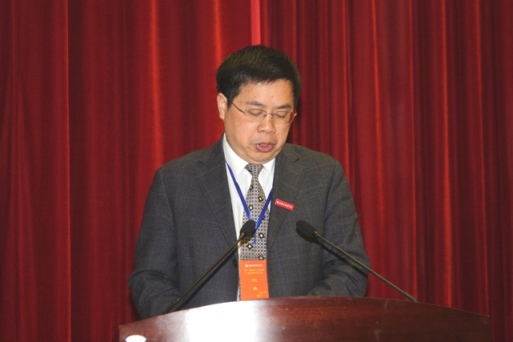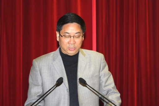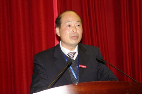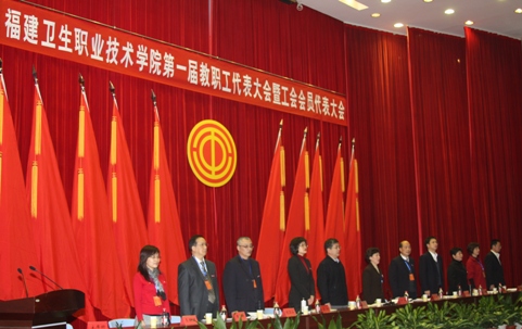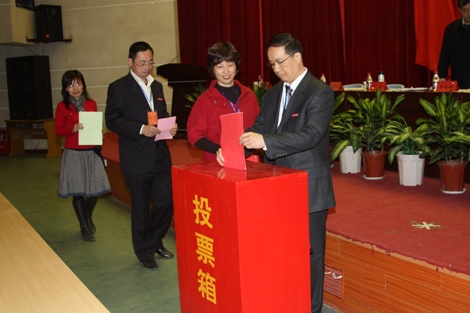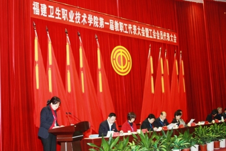 财务处张赛彬副处长作学院财务工作报告 与会领导、全体代表、列席人员、特邀代表合影