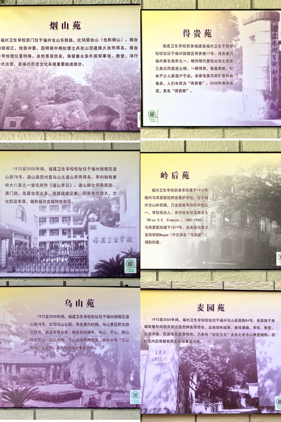 以福建卫生学校和福州卫生学校曾经的“校址”(地名)作为每个“苑”的定语,分别是: