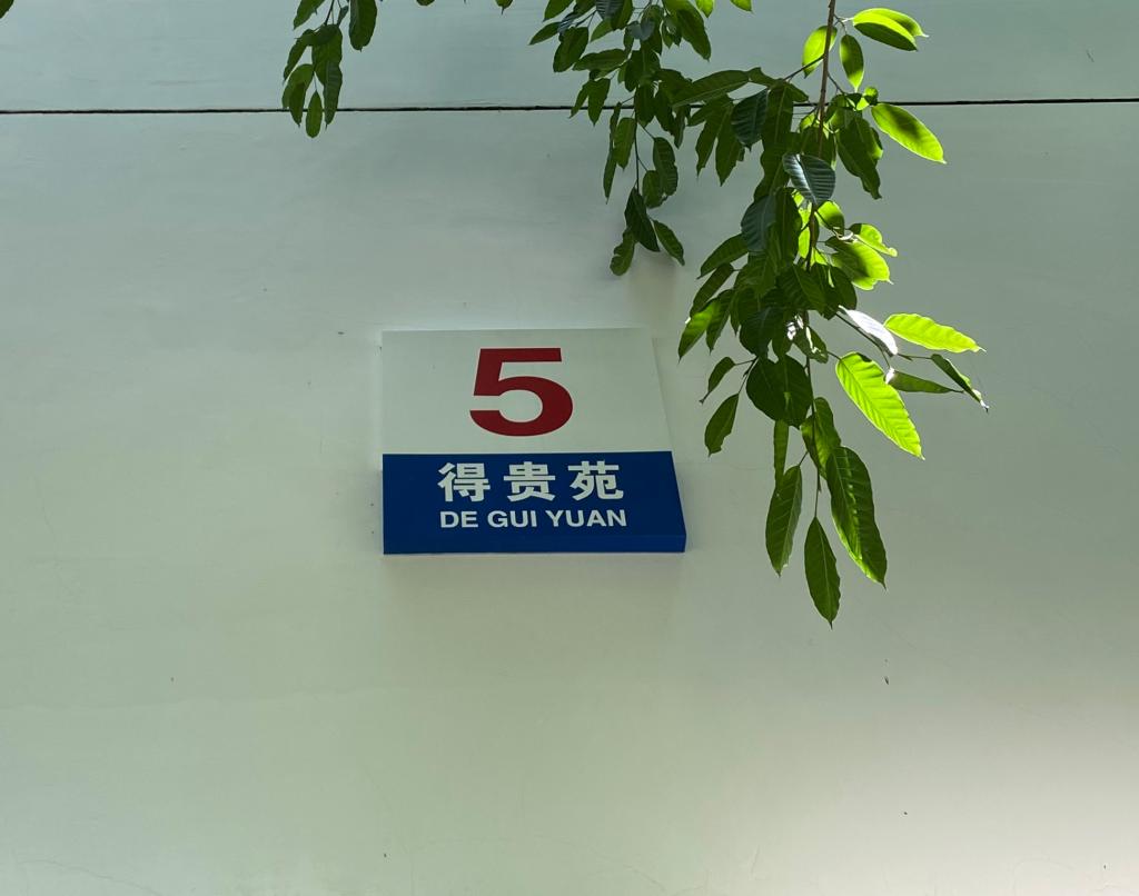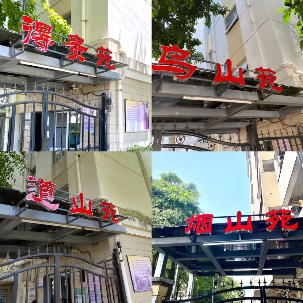 每座楼两侧面挂有楼名楼号牌。