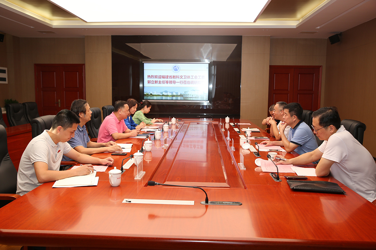 9月6号下午,福建省教科文卫体工会工委主任郭立新、副主任苏龙等领导一行5人莅临开云慰问教师并进行调研。郭立新代表省教科文卫体工会工委向教师代表致以教师节的问候和祝贺,感谢学校广大教师在教书育人岗位上付出的辛勤劳动和做出的新成绩。