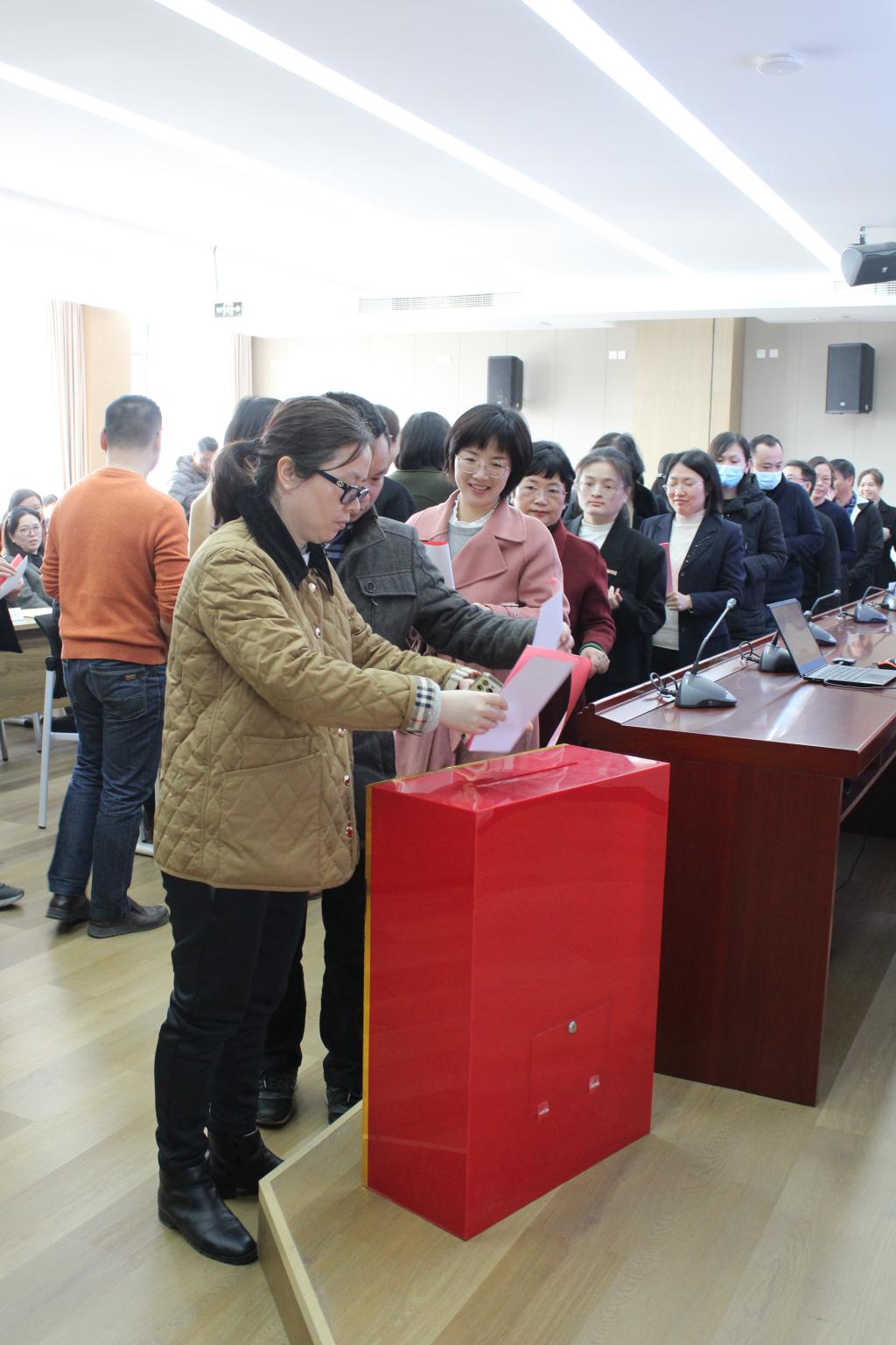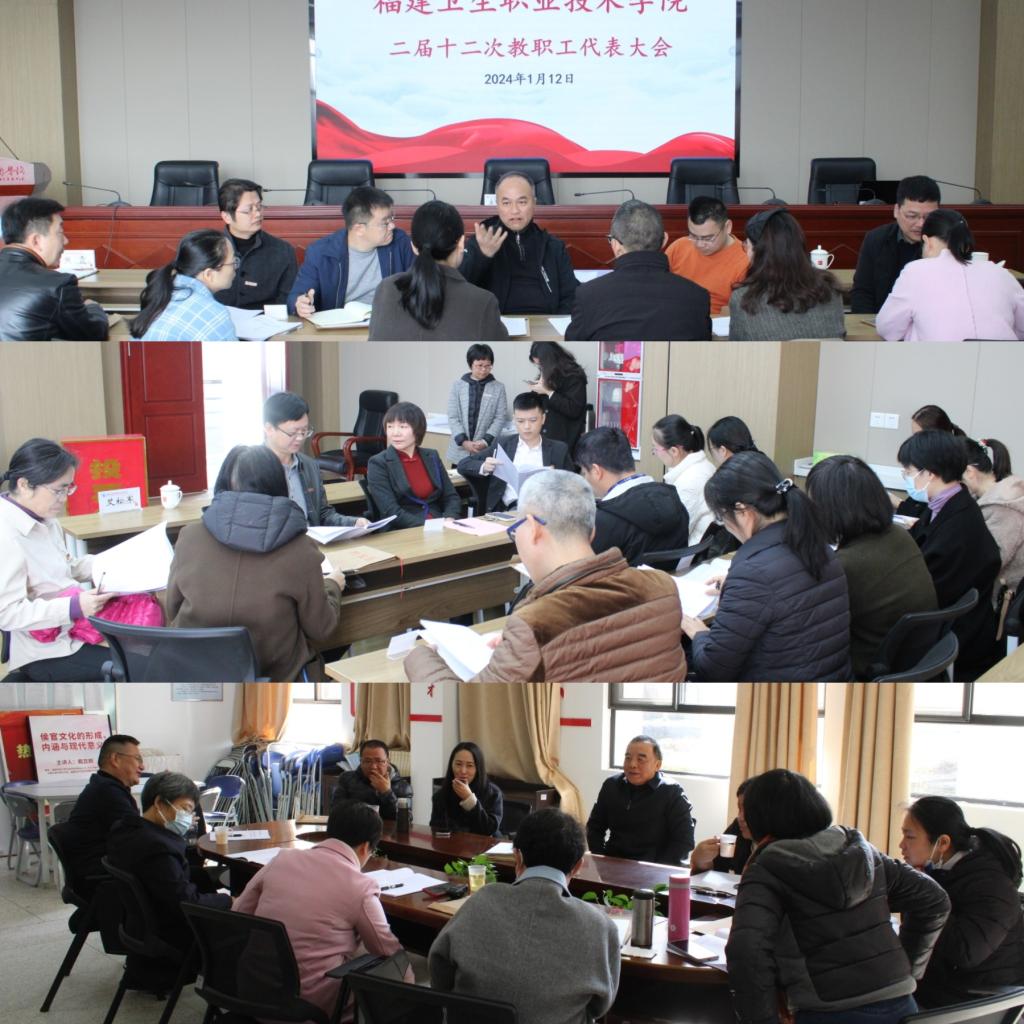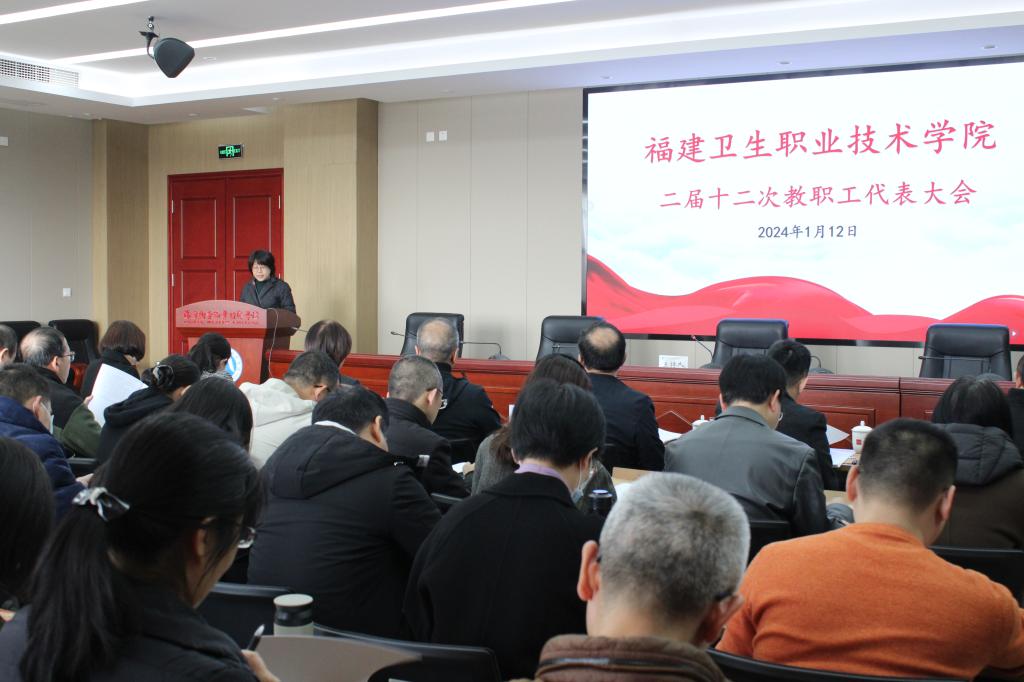 1月12日上午,开云二届十二次教职工代表大会在行政楼六楼会议室举行。在家校领导许能锋、李美华、游锋、黄铭珊、周雄出席会议。校党委副书记李美华主持会议。82名教代会代表参加会议。