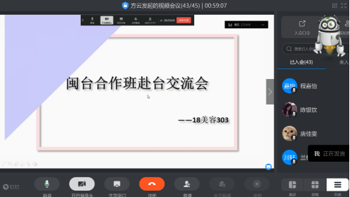 健康管理系于2020年5月15日20:00举办线上闽台合作班赴台交流会。参加此次交流会的领导有健康管理党总支黄曦书记、健康管理系庄海林主任、医学美容技术专业教师,辅导员和医学美容技术专业2018级,2019级闽台合作班同学也参加交流会。