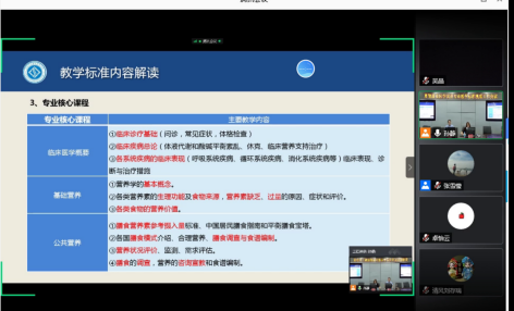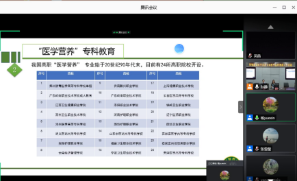 会议后,根据大会上分享的专业教学标准、毕业生情况调查及学院现行医学营养人才培养方案,医学营养教研室的各位老师对医学营养专业人才培养定位、人才培养模式、课程设置、实训条件、教学实施等方面进行了在线小组讨论,分享了各自的心得体会。
