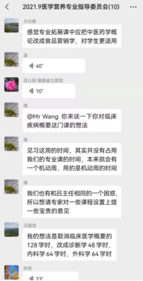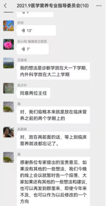 专家听取了徐轶彦老师对目前医学营养专业人才培养方案存在问题的汇报,就修改完善医学营养专业人才培养方案为主题的研讨展开了热烈的讨论,各位专家及老师提出了很多宝贵的意见及建议,并达成共识。