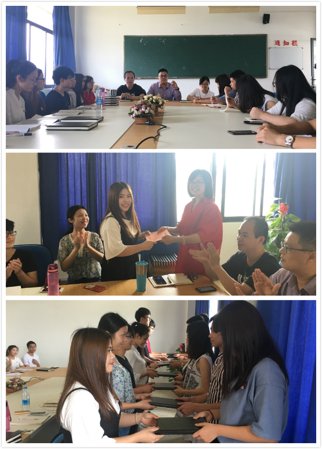 交流会上,艾松军副书记向15级团学干部一年以来的工作表示充分的肯定和衷心的感谢,并指出作为两委会的学生干部要有意识地培养创新思维能力;要学会做事,从点滴做起,在做的过程中注重培养团结协作能力;要学会做人,这是我们的立身之本,更是生存之道。他强调新老干部交流会是一次全新的开始,希望新老团学干部可以多交流,相互促进。最后,邱麟老师向2015级团学干部代表授聘书,同时2016级新一届团学干部向2015级前辈送上了自己的一份心意。