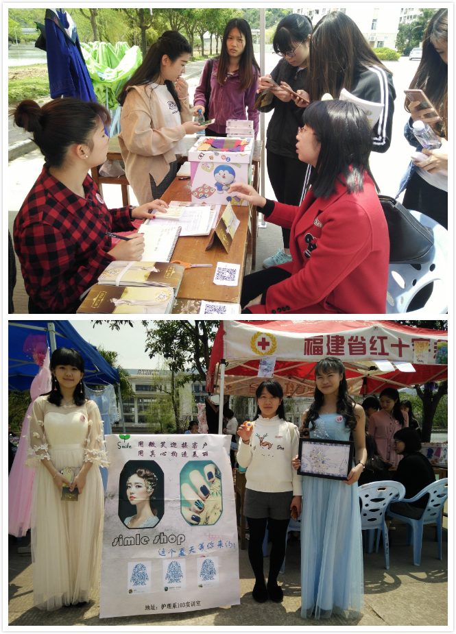 15美容全体同学于2017年4月13日中午12点至下午5点20在明湖餐厅门口处举办了一场“四月之花,朵朵绽放”的主题宣传活动。活动目的是为了用自己的知识和技能去回馈大家。在活动前期,他们做了大量的准备工作,制作精美的海报、宣传单;人员工作分配表;优惠细则,甚至利用晚自习的时间去到班宣传。在活动当天,大家按分配好的工作准备,一切都井然有序。现场她们共分为咨询组、项目体验组、资料记录组、宣传组、后勤组,其余的同学则在实训室做实践操作。在现场同学都很热情的上来咨询和体验。团委的记者,也对她们进行了创业采访。很多老师更是在百忙中抽空来现场体验项目,并提出了许多宝贵的意见。各系部老师同学们也纷纷上来咨询皮肤问题,并在实训室里做了许多项目。活动举办的很成功,也对她们未来的就业打下了一定的基础。