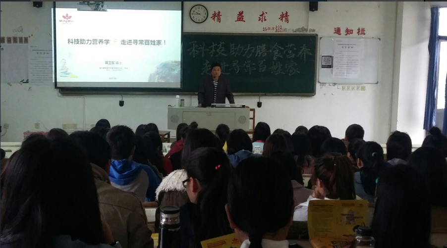 新年伊始,为拓宽学生就业渠道,促进学生对用人单位的了解,同时培养新生的专业意识,2017年1月7日上午,管理系邀请到福州康泰营养保健信息研究所的所长蒋卫东硕士为我系医学营养专业14、15、16级的同学举办了主题为“科技助力营养学,走进寻常百姓家”的专题讲座。