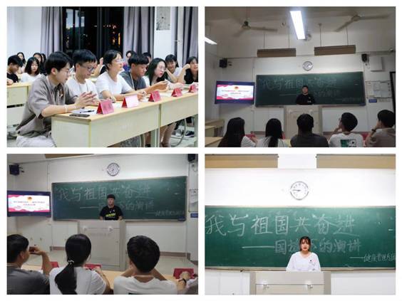 为积极响应院团委“我与祖国共奋进”主题团日活动的号召,引导同学们进一步深入学习贯彻党的十九大精神,加强同学们的爱国教育和提高学生的综合素质。9月18日晚8点,健康管理系团总支以“庆祝中华人民共和国成立70周年”为契机,于教学楼301开展以“我与祖国共奋进——国旗下的演讲”为主题的庆祝中华人民共和国成立70周年演讲比赛活动。