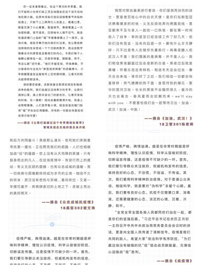 2020年的二月比任何时候都需要爱和希望,管理系学子们的声声加油,响应着他们同武汉共同抗“疫”的决心。黑夜过后,总能看见最美的太阳;冬日已去,我们在闽卫和你一起期待。我们从未像现在般感受彼此的牵挂,正如白岩松老师所说“隔离病毒但不隔离爱,因为爱是桥梁”管理系学子们积极成为抗“疫”一份子带着他们的祝福和努力,给予武汉最大的支持和鼓励。