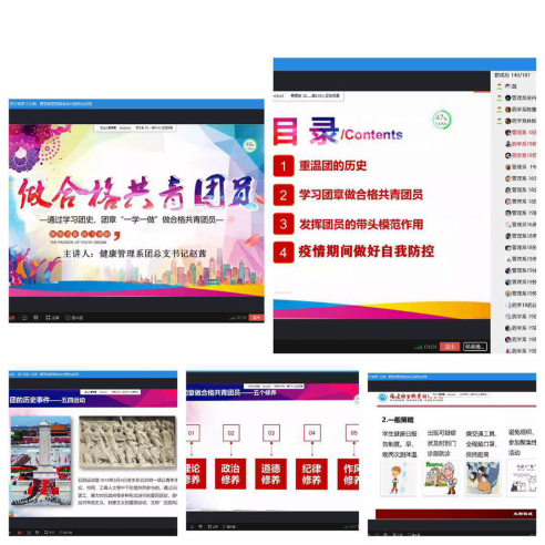 下午四点整,团课培训正式开始,本次团课由健康管理系团总支书记赵茜老师主讲,主题为“做一名合格的共青团员”。首先赵茜老师带领全体学员重温团的历史,解读团章团史,增强了学员们对党、团的了解和认识,明确了当代青年的使命和职责。紧接着,从“七个方面”为学员们深入讲解如何发挥团员的带头模范作用,最后,赵茜老师分别从错峰返校、错峰上课、错峰就餐与宿舍和个人衣物等方面向学员们普及了开学后该如何正确做好自我防控。
