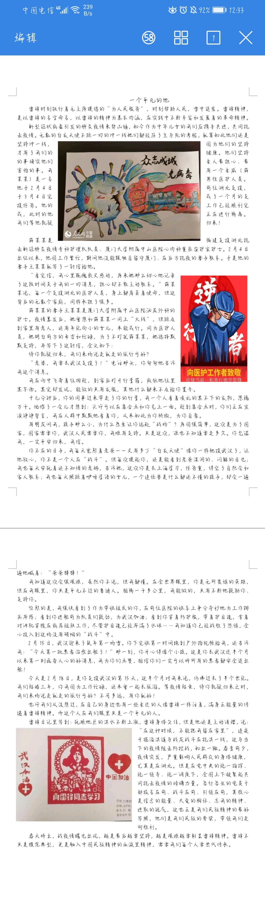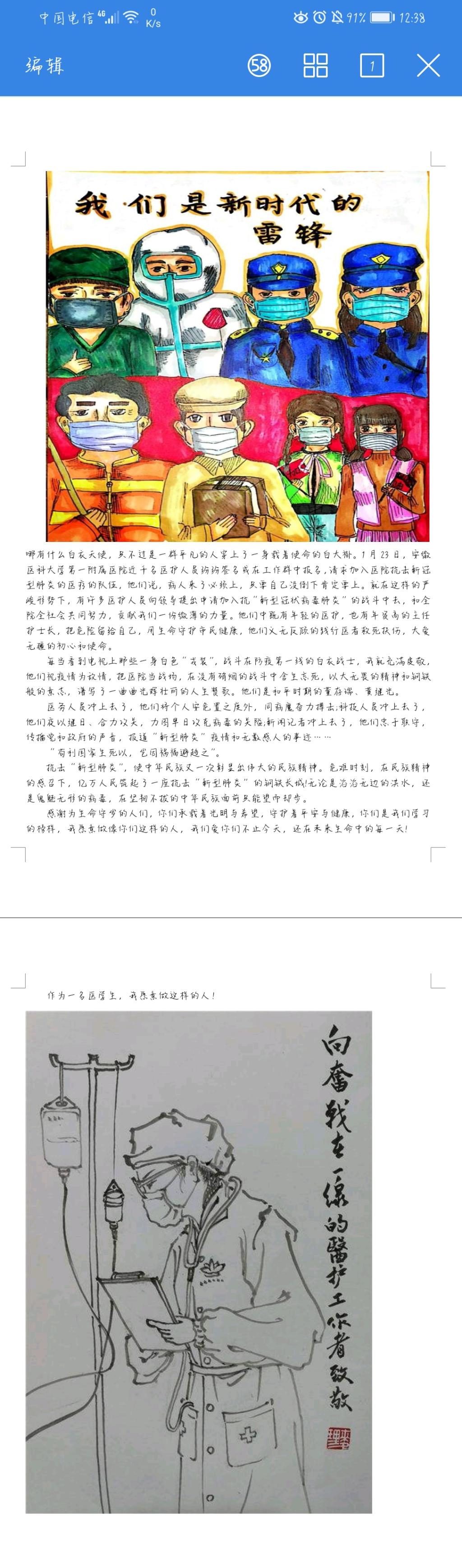 18、19级各班同学的积极参与此次比赛,系易班站收到广泛来稿,作品尽数体现了同学们以个人独特视角对这场疫情阻击战的所闻所见所感,也体现了同学们愿意贡献自己一份力量的决心。在大家的作品中我们发现了一些特殊人群的缩影:为抗疫甘当志愿的青年战士、为抗疫投笔宣传防疫知识的文人墨士,他们用自己的实际行动寄托他们对祖国的美好的祝愿。在灾难面前,他们都是大美之人,都是敢于为国家奉献的人,他们是最可爱的人。我们这个充满爱与力量的国家,在战“疫”面前,大家精诚团结,万众一心共克时艰。