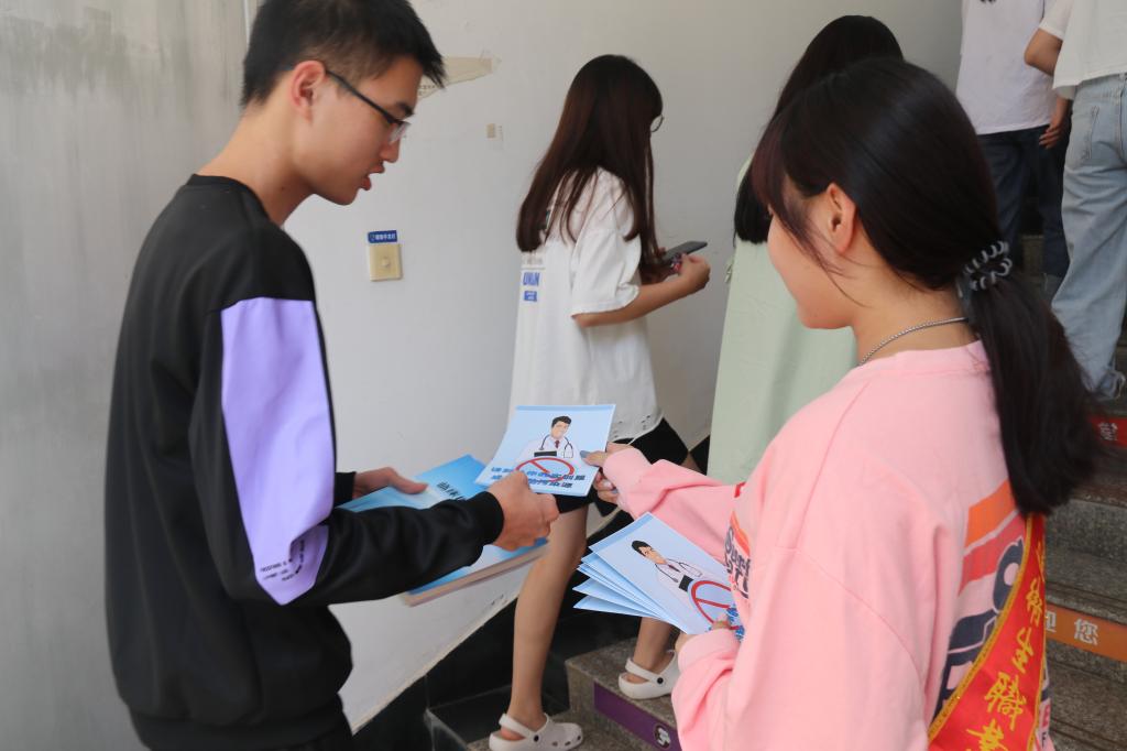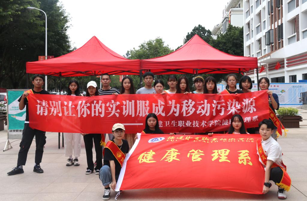 医护人员的实训服是职业的象征,代表着生命的尊严和医学的圣洁,是医学职业伦理教育的良好载体,它具有切断传播途径作用,也是防止交叉感染重要屏障,但是如果不正确处理,可能会成为危害人体的来源。2020年10月5日健康管理系第一党支部联合系团总支开展以“请别让你的实训服成为移动污染源”为主题的卫生安全宣传教育活动,学院党委委员、副院长陈贞健指导并参加此次活动。