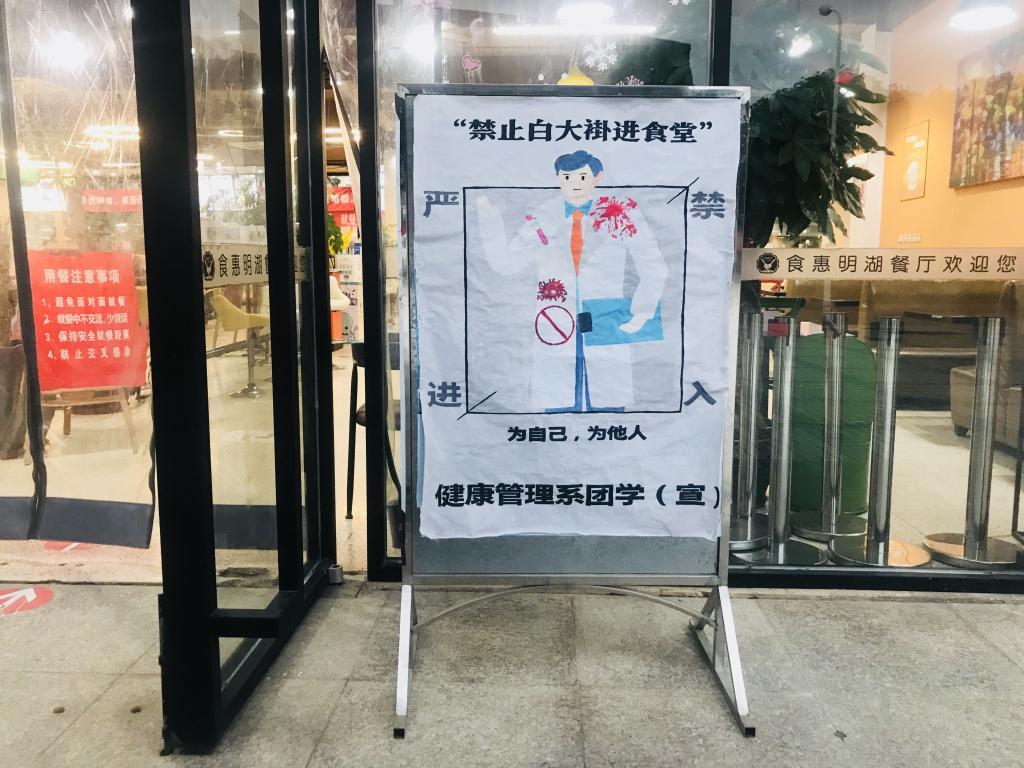 深入开展宣传教育,倡导文明进餐礼仪。健康管理系志愿者在学院的第一食堂、第二食堂、明湖餐厅门口对往来就餐和身穿实训服的学生进行相关知识普及。活动主要围绕实训服进行入食堂的危害进行开展,通过张贴海报、展板、标语宣传、发放宣传单等形式,通过理论讲解,知识普及,不断提高同学们对实训服入食堂危害知识的重视程度,积极倡导规范文明进餐礼仪。