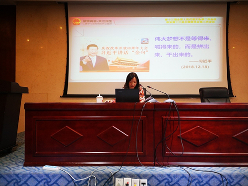 在深入学习习近平新时代中国特色社会主义思想和2019全国两会胜利召开的背景下,为深入学习贯彻2019全国两会精神,把握党和国家最新的政策走向,2019年4月17日下午,管理系教工党支部李美华同志为全系师生党员上一场以“聚焦全国两会”为主题的党课。