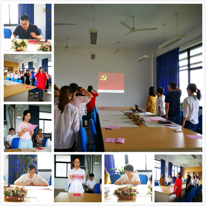 2018年6月5日上午,管理系党总支新党员入党宣誓仪式在系会议室隆重举行。院党委工作部柯琼莺副部长、管理系党总支委员、各支部教师代表、入党积极分子代表及11名新党员参加了此次宣誓仪式。仪式由系党总支纪检委员陈盛兰主持。