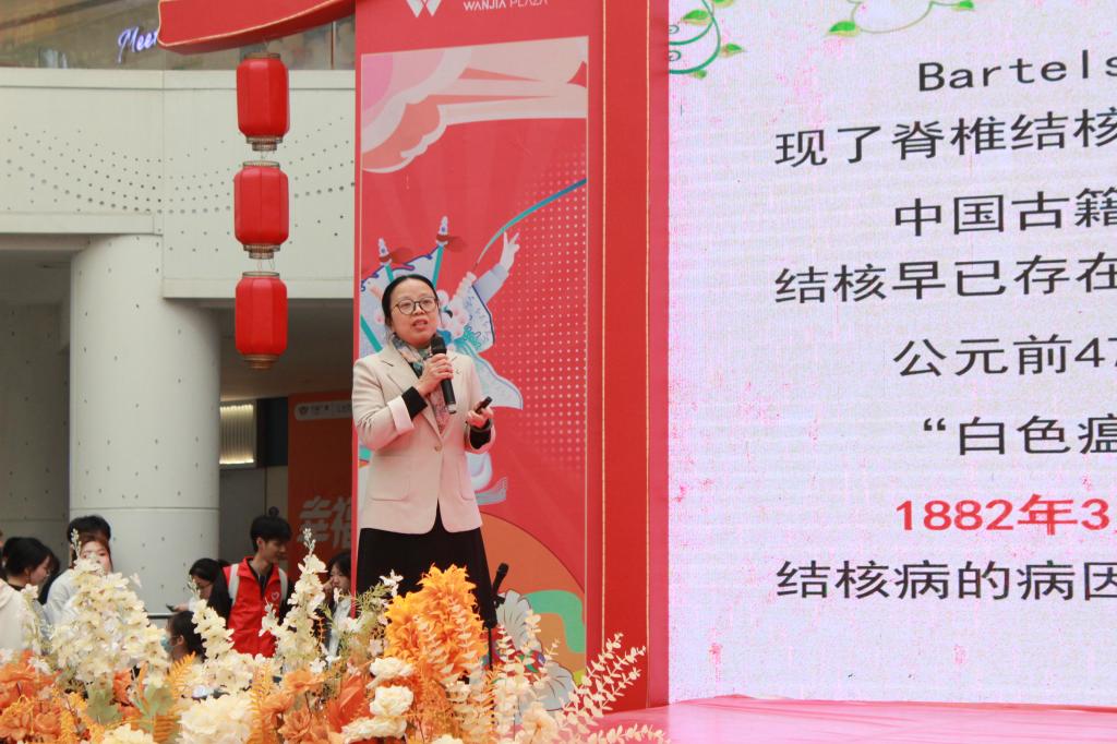 支部党员龚海蓉为本次活动致辞,强调了结核病防治工作的重大意义,指出结核病防治需要从专业行动升级为全民运动,通过校地协同构建健康防护网。她倡导社会各界携手合作,形成群防群治的良好氛围,用实际行动守护健康。