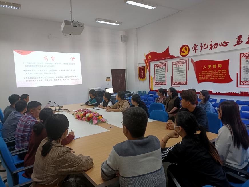 会议最后,支部书记对全体教师提出了三点要求:一是要加强理论学习,不断提高自身的政治觉悟和业务水平;二是要严守师德底线,严格遵守教育教学规范,树立良好的师德形象;三是要以身作则,关爱学生,为人师表,努力为培养社会主义事业的接班人贡献自己的力量。