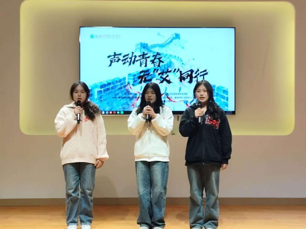 比赛现场氛围热烈庄重,各参赛队伍依次登台。同学们身着整齐服装,以饱满昂扬的精神状态唱响防艾主题歌曲。旋律时而激昂奋进,传递着携手防艾的坚定信念;时而温情脉脉,诉说着对艾滋病患者的理解与关爱。每一首歌曲都紧扣防艾核心,用悠扬的歌声普及防治知识、传递人文关怀,真挚的情感与嘹亮的歌喉打动了现场每一位师生,台下掌声此起彼伏。整场活动以纯粹的歌唱形式,让科学防艾的理念随旋律流淌,在共鸣中深深扎根心底。