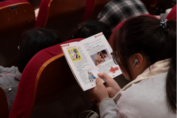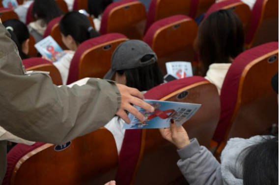 活动前期,志愿者向同学发放和讲解防艾宣传手册,手册内容聚焦核心知识点,清晰梳理艾滋病的主要传播途径、科学预防措施、检测治疗流程及相关权益保护常识,明确“日常接触不传播”“早检测早治疗可显著提升生活质量”等关键认知,为同学们搭建起系统的防艾知识框架。观影环节,影片《最爱》以细腻的叙事方式,展现了艾滋病感染者在病痛折磨与社会误解下的挣扎与坚守,剧中主角面对命运的抗争、邻里间的隔阂与零星温情,让在场观众深受触动,直观体会到偏见与歧视对感染者的深层伤害。