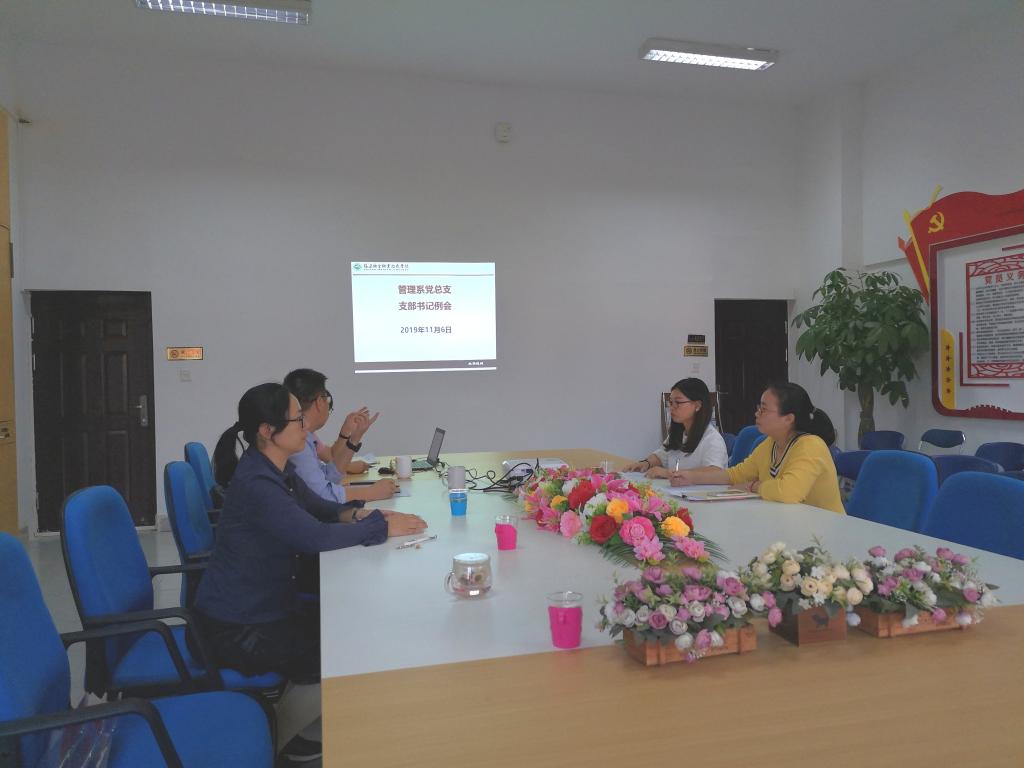 为进一步督促、推动支部党建工作顺利开展,解决工作过程中的难点问题,管理系党总支于11月6日召开支部书记例会,会议由系党总书记艾松军主持。管理系党总支委员、各支部书记参加会议。