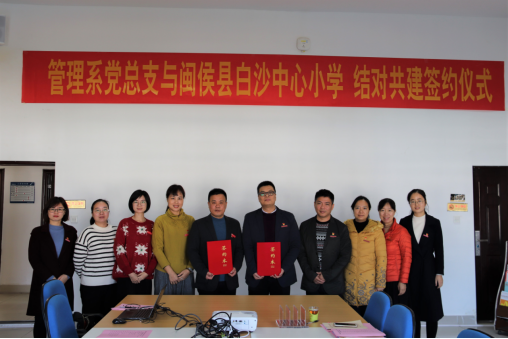 此次管理系党总支与白沙中心小学结对共建成功签约,进一步推动乐“文明校园+乡村少年宫”共建项目,形成结对共建工作的长效机制,让共建成果服务乡村振兴,提升农村未成年人思想道德建设工作水平。今后,双方将坚持党建引领、互相支持、共同进步、共谋共建的原则,以“激发党建新活力,实现双赢齐发展”为目标,实现资源共享、优势互补、全面发展、共同提高,以共建促发展,构建新的有机互联的组织系统,不断提高共建工作整体效应。