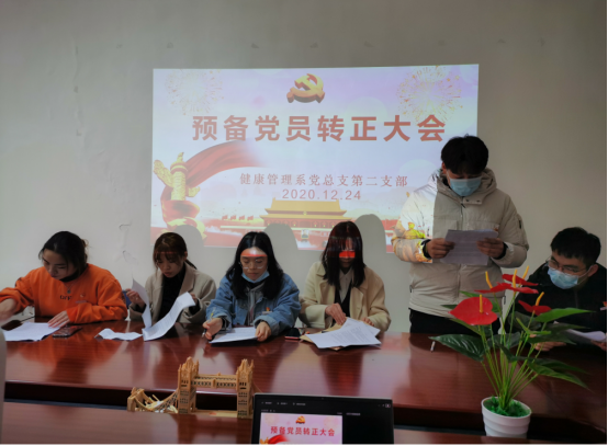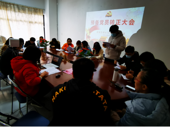 2020年12月24日下午,健康管理系党总支第二支部在图书馆会议室召开预备党员转正大会。会议由支部书记冯瑞华同志主持,支部16名正式党员同志及6名学生预备党员参会。
