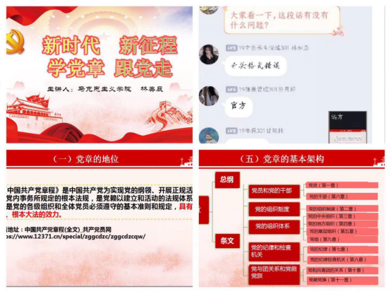 1月15日晚,健康管理系第七期业余分党校第三课由马克思主义学院林美辰老师在线上开展以“新时代,新征程,学党走,跟党走”为主题的专题党课。此次党课主要为学员进行党章的介绍,党章规定了中国共产党的信念宗旨、组织保障、行为规则和纪律约束,每一条都凝结着党的建设的历史经验,是共产党人的“原教旨”。此次党课分为两部分,一是学党章,二是争取入党,旨在加强学员对党章的学习,每一位学员都要把党章党规党纪刻印在心上,严格按党章标准要求自己,知边界、明底线,今后要不断提高执行党章的自觉性,牢记使命,为民服务。