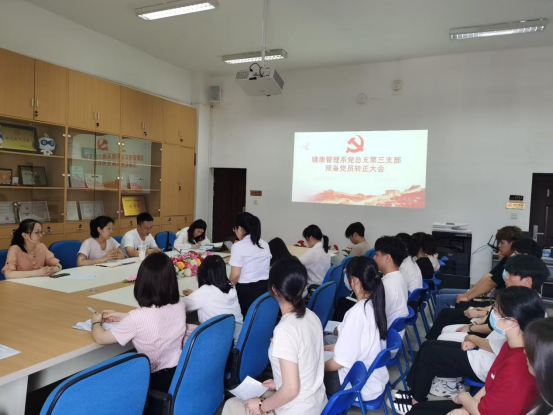 6月1日,健康管理系党总支第三支部于图书馆五楼会议室召开预备党员转正大会,会议就卢德利等10名志转正问题展开了充分讨论,党支部书记王开晔同志主持会议。