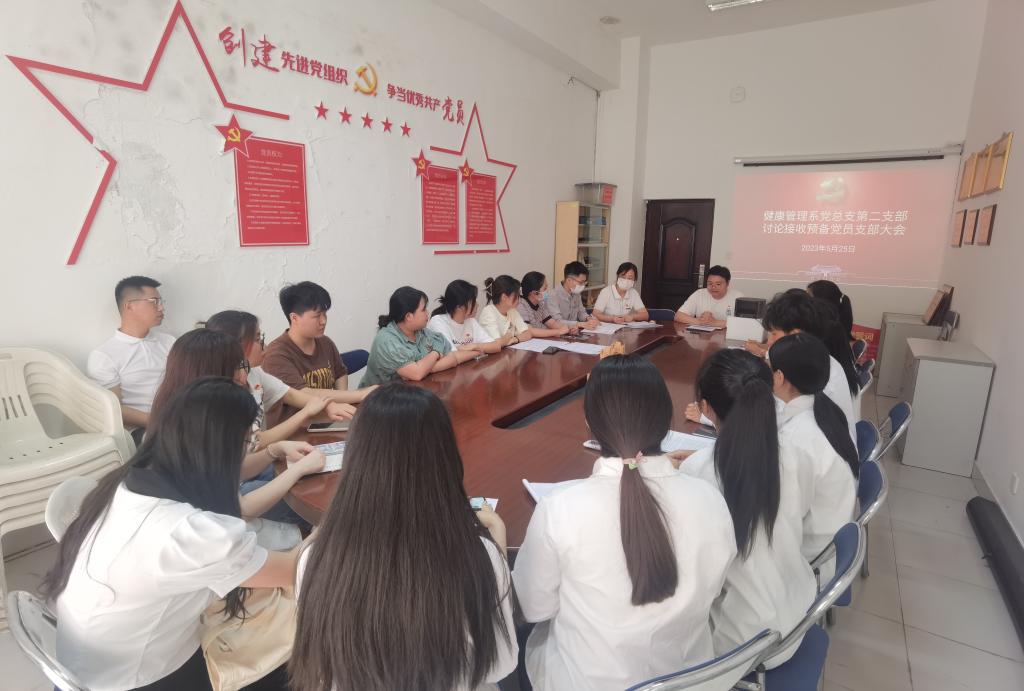 为增强党员队伍的战斗力和凝聚力,5月25日,健康管理系党总支第二党支部在党员大会上举行了接收7名预备党员的仪式。